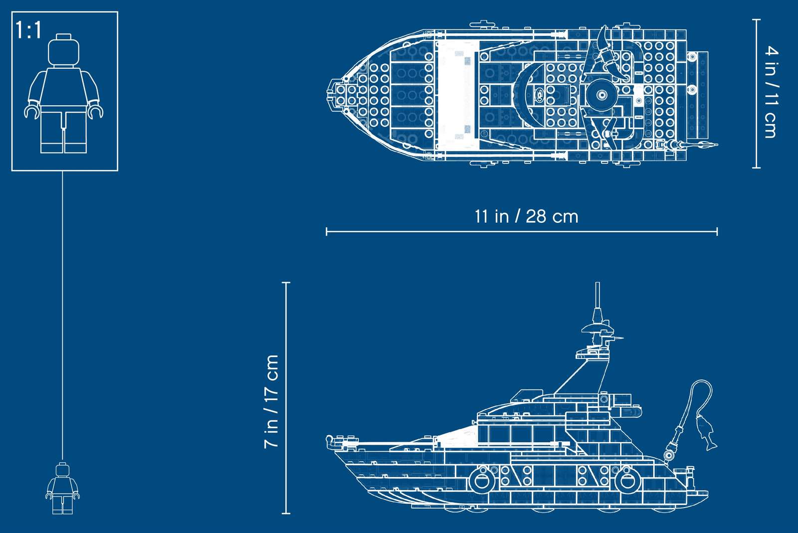 - Luxury Yacht measures over 6” (16cm) high, 10” (27cm) long and 3” (10cm) wide.