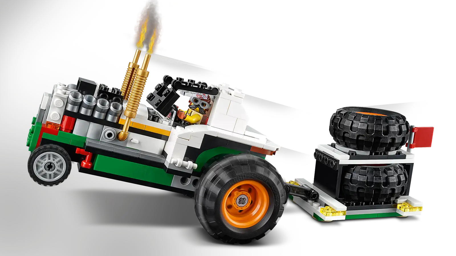 - Feed creative food truck role play with this set of 3 models in 1: A LEGO® Creator 3in1 Monster Burger Truck (31104) with suspension, an off-roader and a tractor pulling vehicle, plus 2 minifigures and a dog figure.