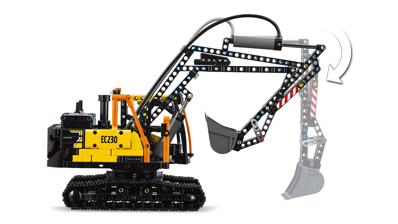 - Toy electric charging station – The model is not motorized so kids can use their imaginations as they lift and lower the charging station and pretend to charge the excavator