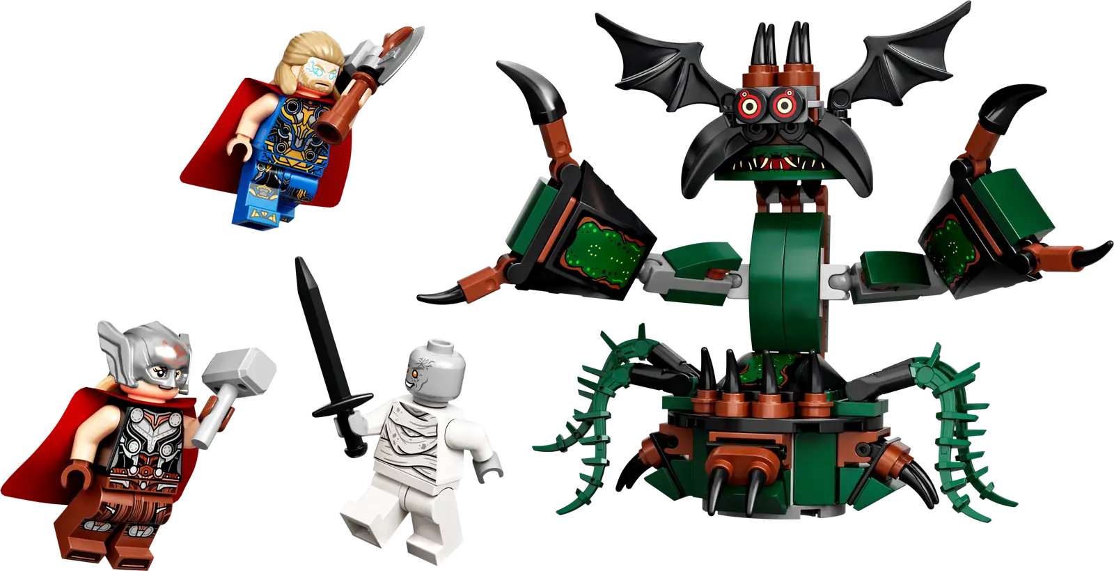 - Iconic Marvel characters – Includes Thor, Mighty Thor and Gorr minifigures, plus a buildable Shadow Monster with jointed arms and claws for imaginative play and display