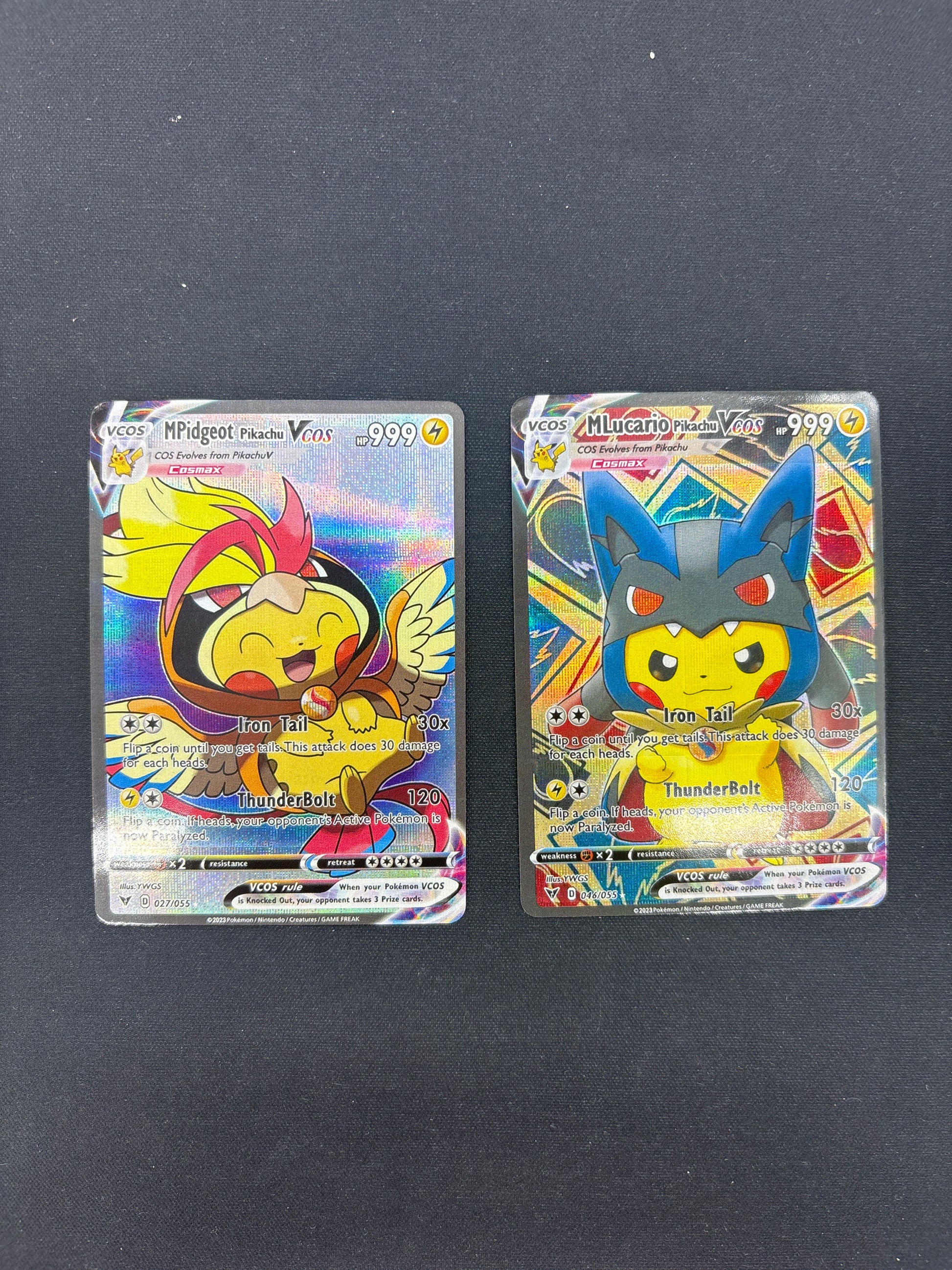 Auction Lot 320: Pokemon Cards (CUSTOM) Lot of 2 Pikachu Poncho M Pidgeot & M Lucario Conditions Vary
