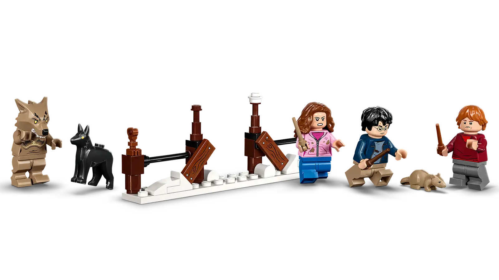 - Magical features – The Whomping Willow™ spins around and its branches bend to strike minifigures and pick them up. Professor Lupin turns into a werewolf as the glowing moon appears